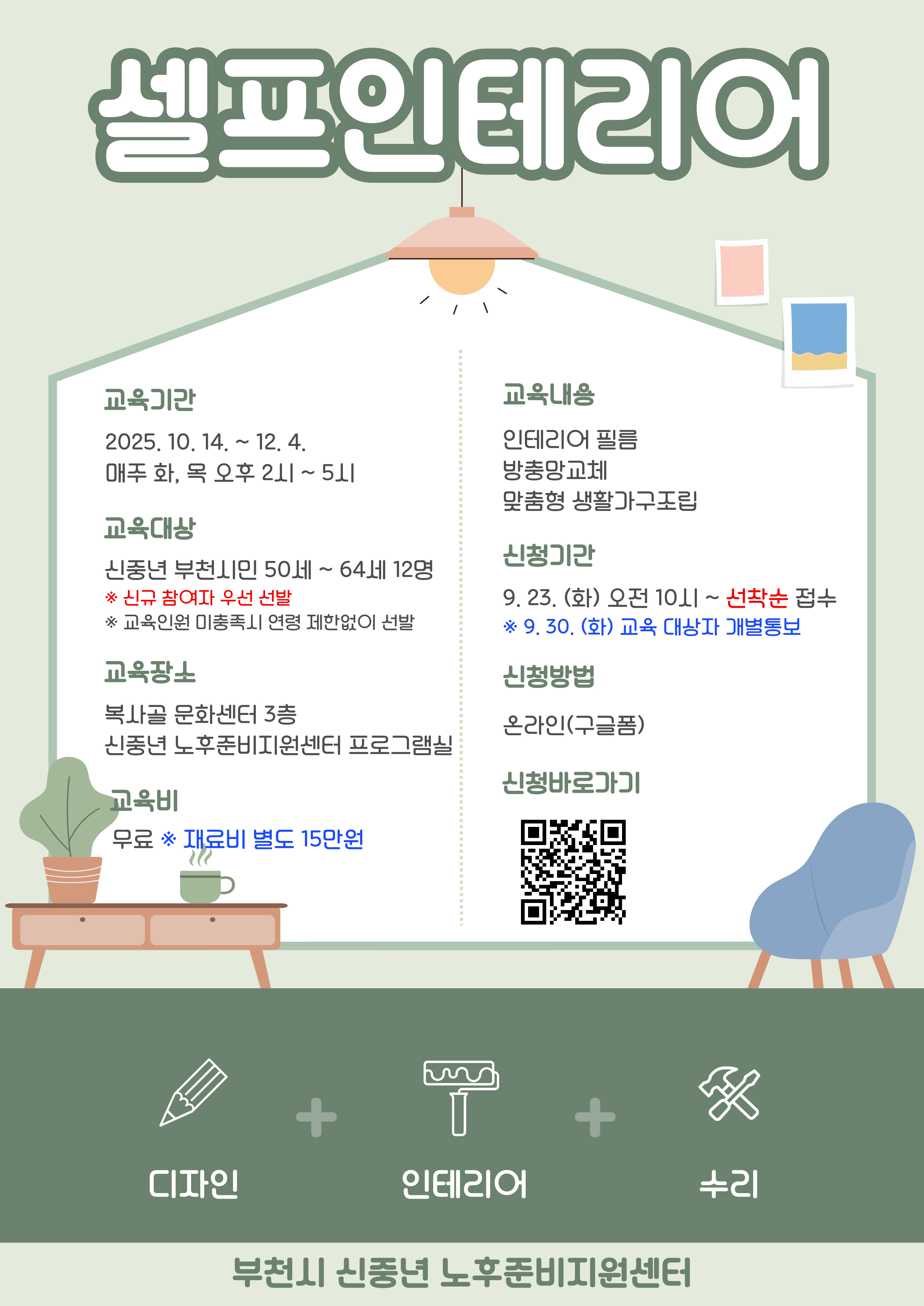 - 교육장소 : 부천시 신중년 노후준비지원센터 프로그램실(복사골문화센터 3층)