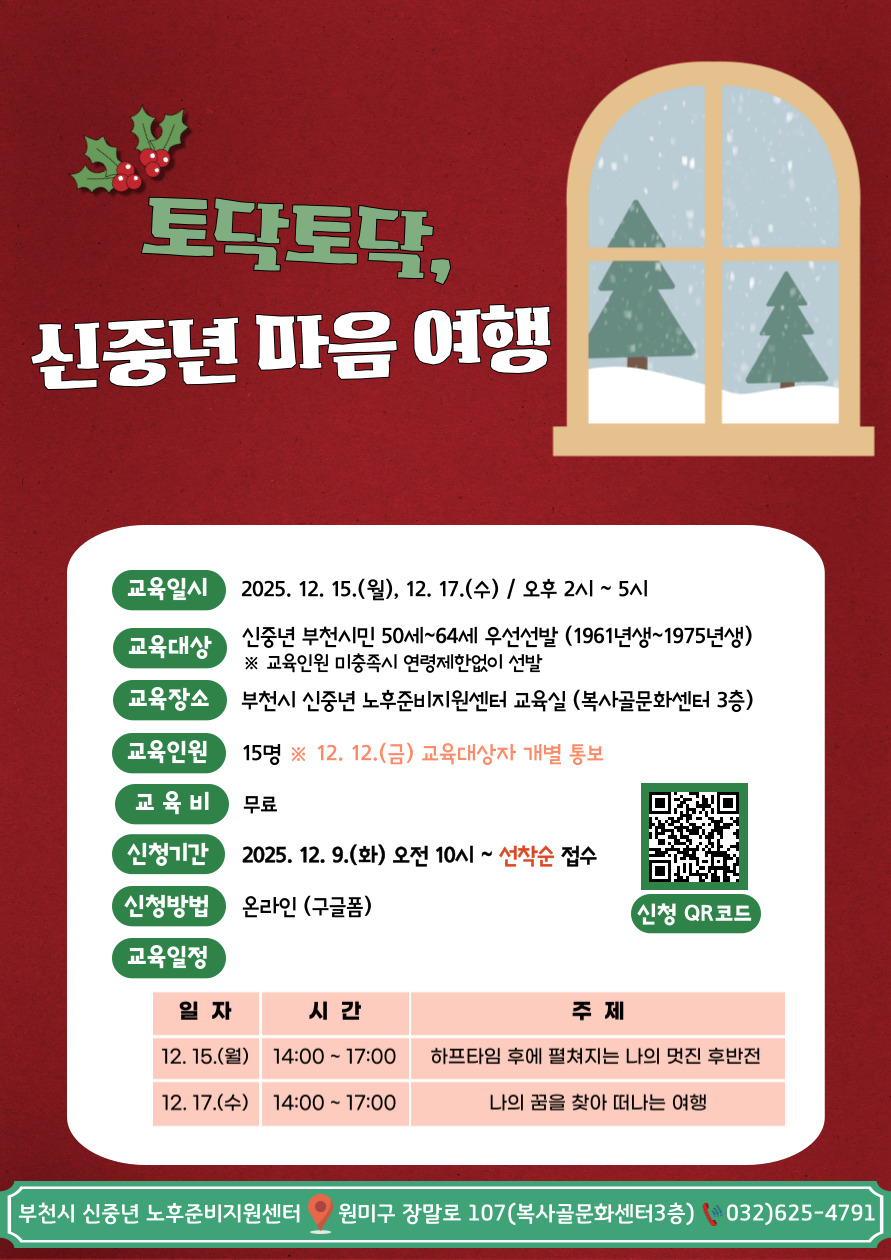 ■ 신청기간 : 2025. 12. 9.(화) 오전 10시 ~ 선착순 접수